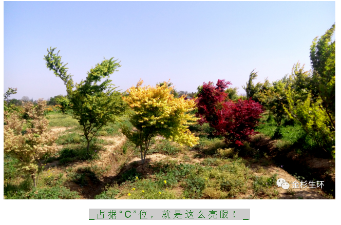 傳統(tǒng)色塊,無(wú)非綠,紅,黃三種顏色,“金禧”從萌芽到葉片成熟綻放,會(huì)經(jīng)歷多個(gè)變色階段,所以色塊隨著新葉的生長(zhǎng),會(huì)呈現(xiàn)多種色彩效果,并且層次遞進(jìn)是其他任何色塊苗木無(wú)法比擬的。